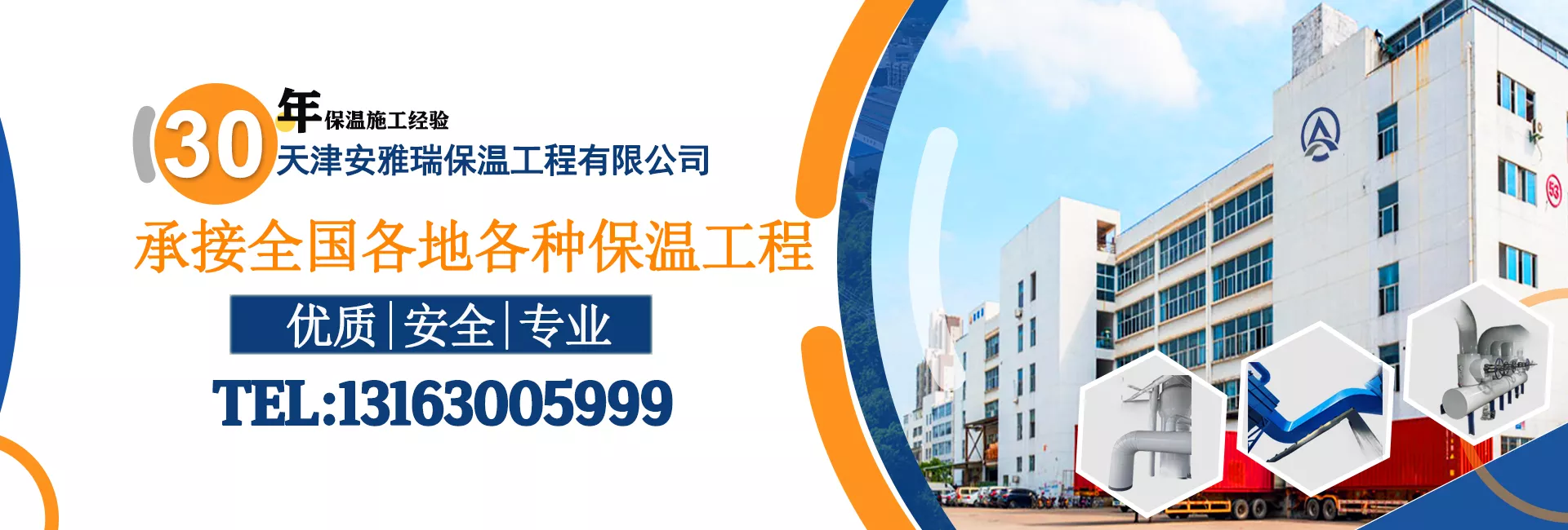 天津安雅瑞保温工程有限公司,专业要承接各种管道、设备保温,包括蒸汽管道保温、导热油管道保温、消防管道保温、低温水冷冻水管道保温、LNG管道保温等等各类管道保温以及反应釜、罐体、多效蒸发器等等各类设备保温。镀锌铁皮、铝皮、彩钢板、不锈钢等等均可以施工。公司承接全国各地各种保温工程。联系方式:13163005999